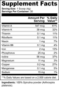 Ingredients: 100% Spirulina Powder (Arthrospira platensis).
